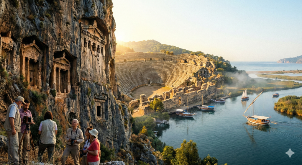 | Spring (April – June) | Pleasant temperatures ranging from 20°C to 30°C (68°F – 86°F). Mild humidity and minimal rainfall. | Ideal for active and historical travel. The landscape is vibrant, lush, and blooming with wildflowers. Perfect weather for strenuous hikes up Radar Hill, extensively exploring the massive Kaunos ruins without heat exhaustion, and comfortable river cruising. Prices are generally lower before the peak summer rush. |